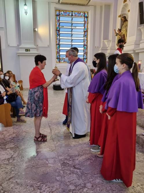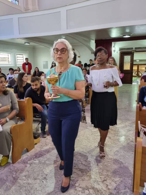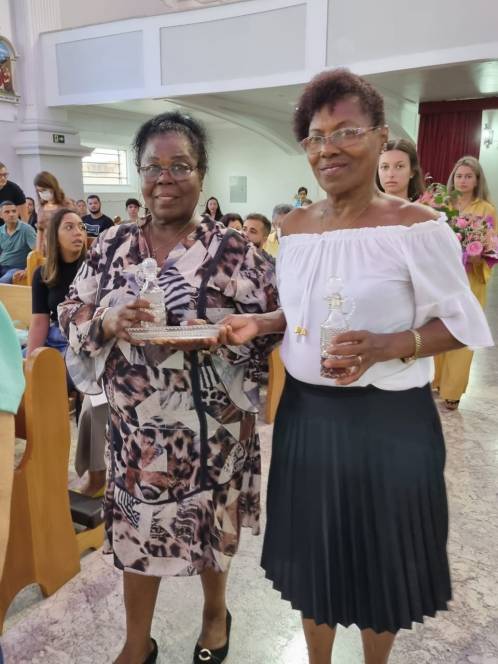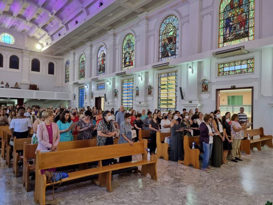 As formandas de 1968 e 1969 do CENSA reuniram-se no sábado, 26/11, para comemorar os cinquenta anos de formatura na escola. O encontro, adiado pela pandemia, foi promovido pela UESC - União das Alunas Salesianas Campistas e reuniu cerca de 70 colegas que, com alegria, relembraram momentos do tempo de estudante. Conhecendo a atual infra estrutura do CENSA, que ao longo dos anos foi ampliada e modernizada, o grupo visitou os novos espaços até chegar à capela, onde foram acolhidas pela diretora geral Ir. Rosa Idália Pesca, conheceram as obras sociais desenvolvidas pela UESC e receberam uma medalha de Nossa Senhora e Dom Bosco. Uma Missa de Ação de Graças, no domingo, finalizou a comemoração, com as ex-alunas ofertando fraldas para compor os enxovais que anualmente é entregue à comunidade carente.